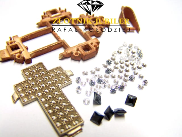 Krzyż wykonywany jest z dwóch kolorów złota w mojej pracowni