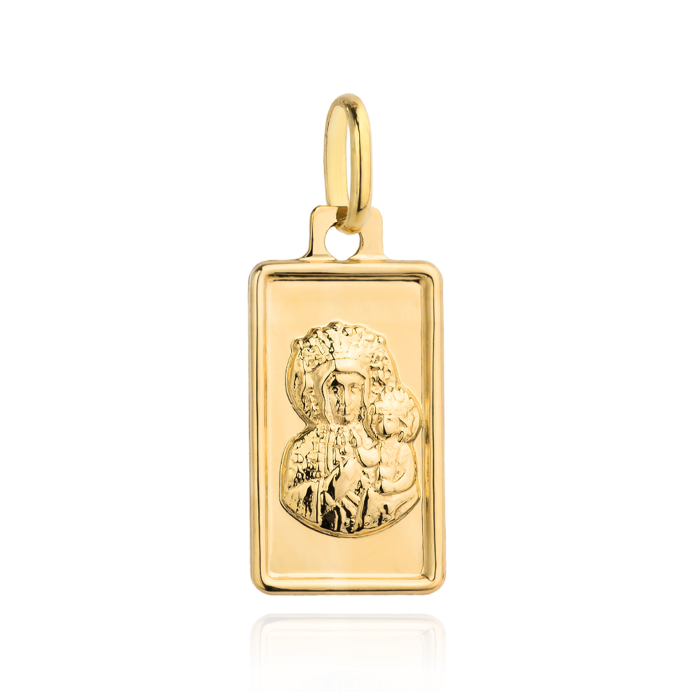 Medalik złoty Matka Boska Częstochowska w prostokącie