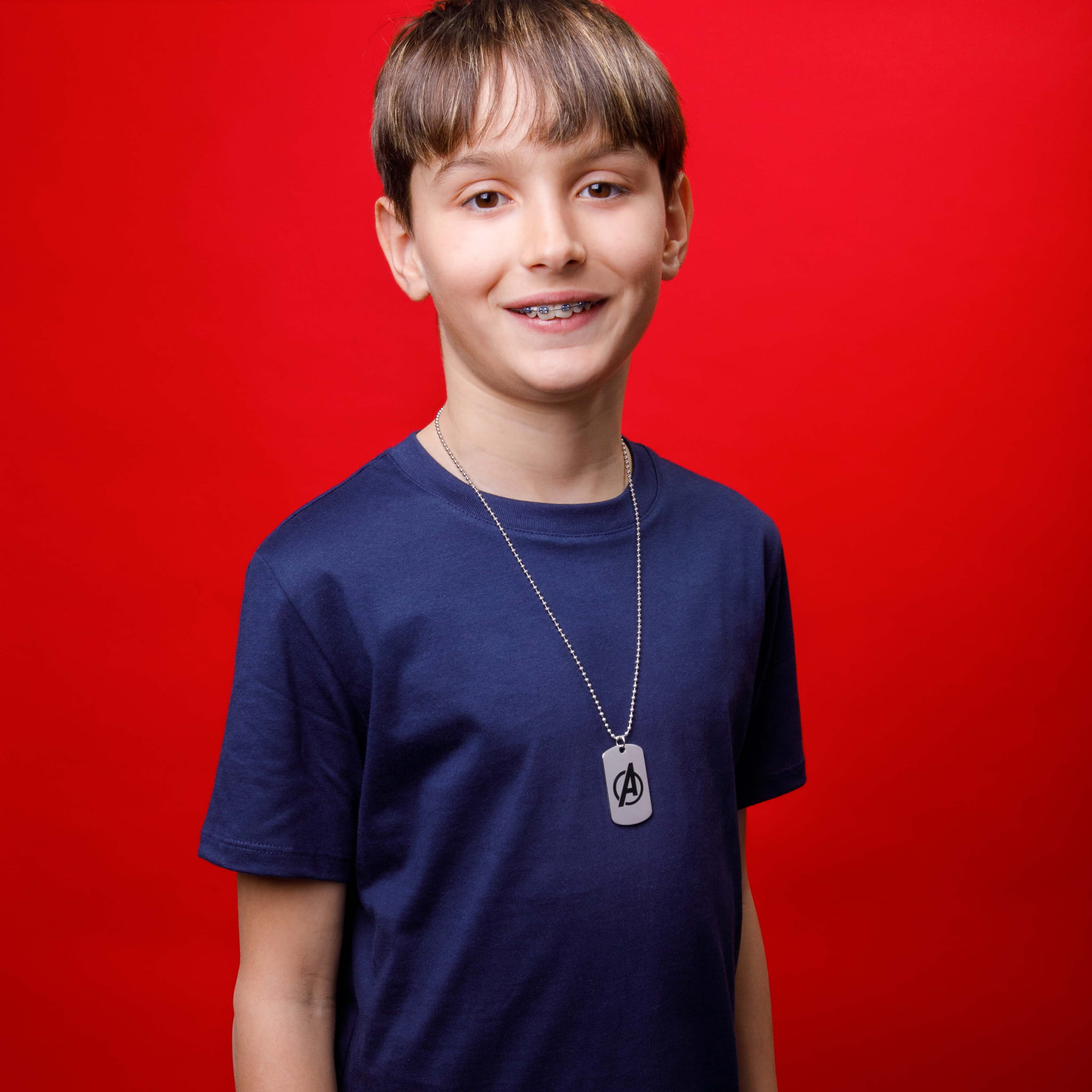 Naszyjnik męski stal nierdzewna AVENGERS "A" nieśmiertelnik 56 cm