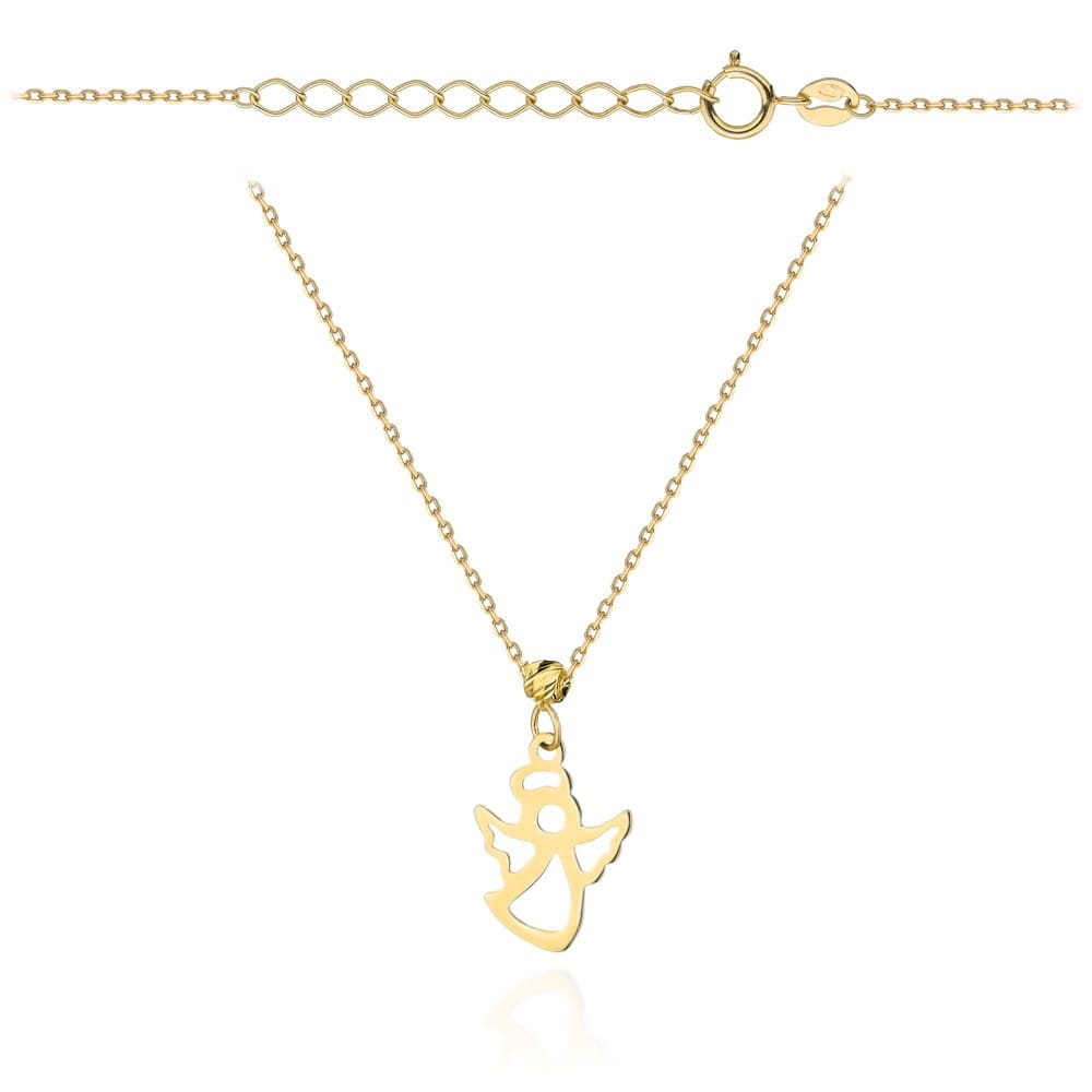 Naszyjnik złoty aniołek i diamentowana kulka super lekki pr. 585