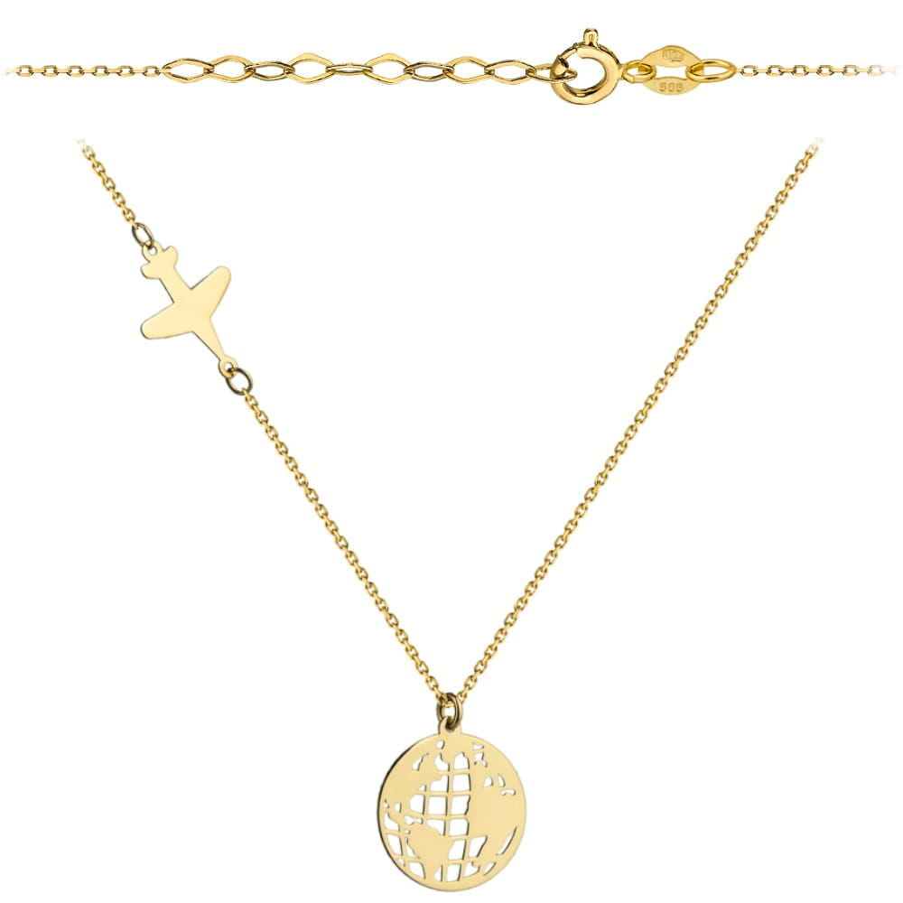 Naszyjnik złoty samolot i kula ziemska