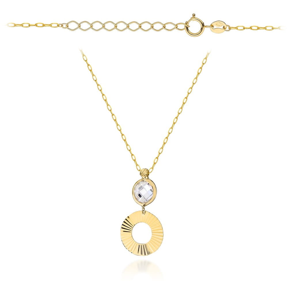 Naszyjnik złoty z białym kamieniem i diamentowanym ringiem