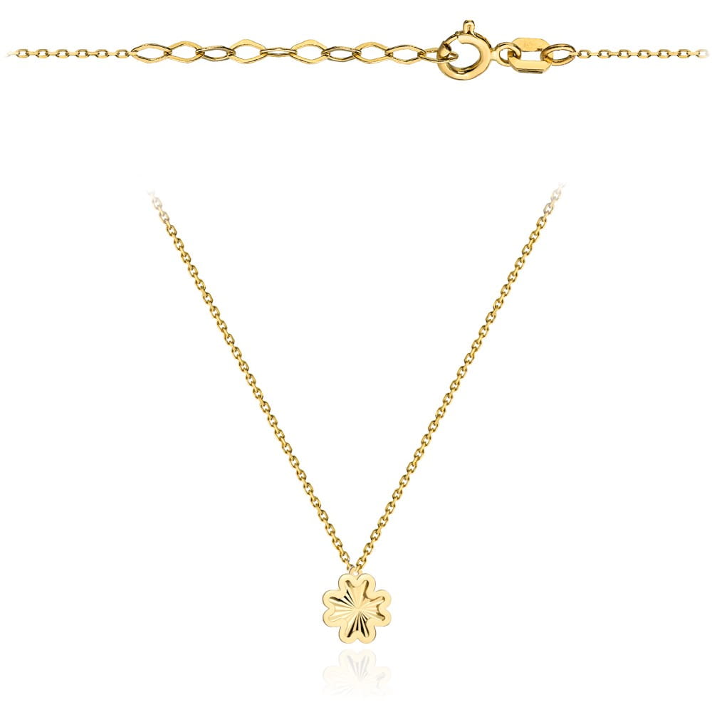 Naszyjnik złoty z diamentowaną koniczynką w gładkiej oprawie pr. 585