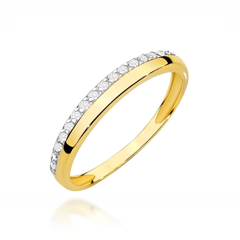 Pierścionek złoty z gładką szyną i rzędem cyrkonii