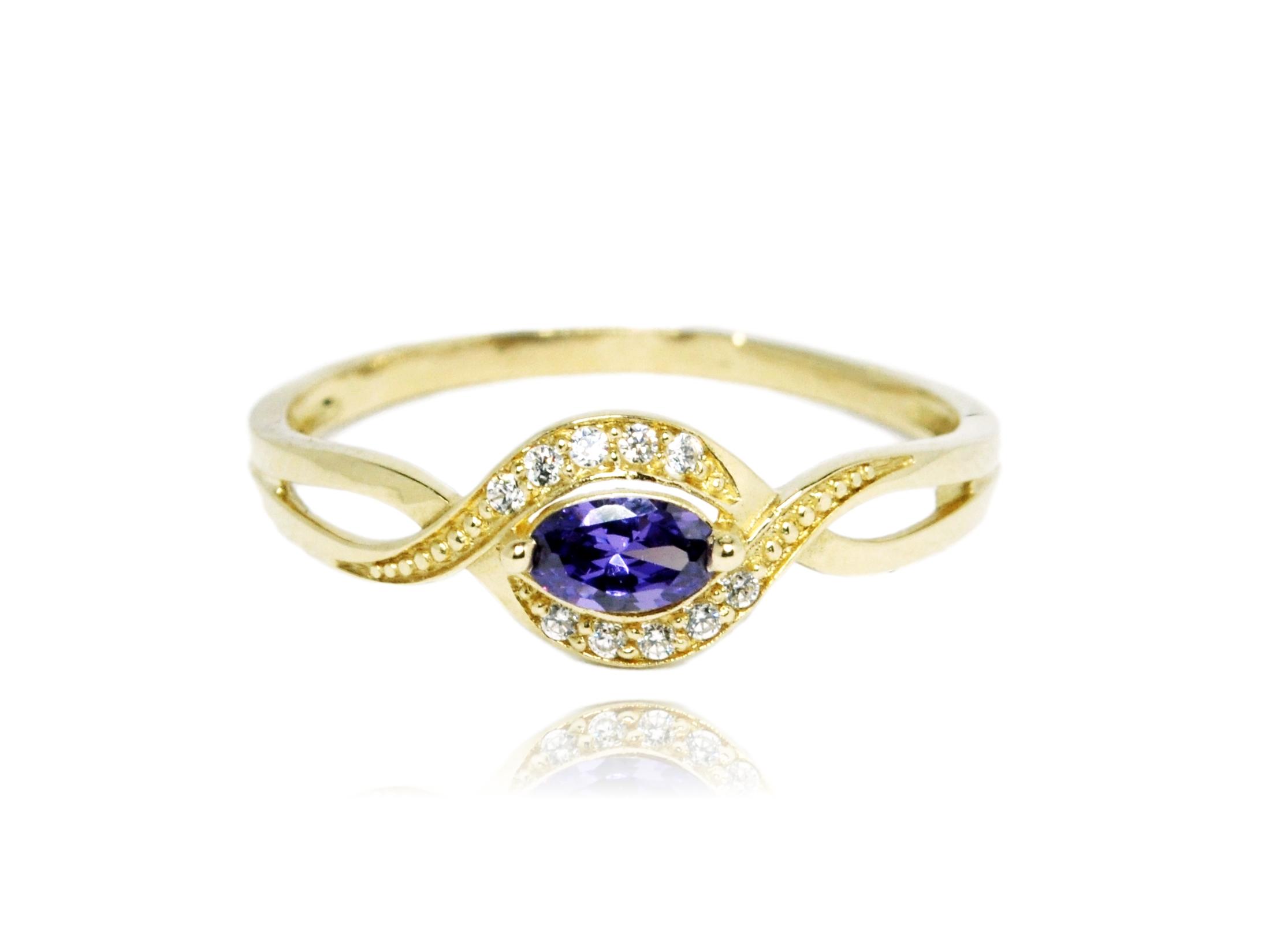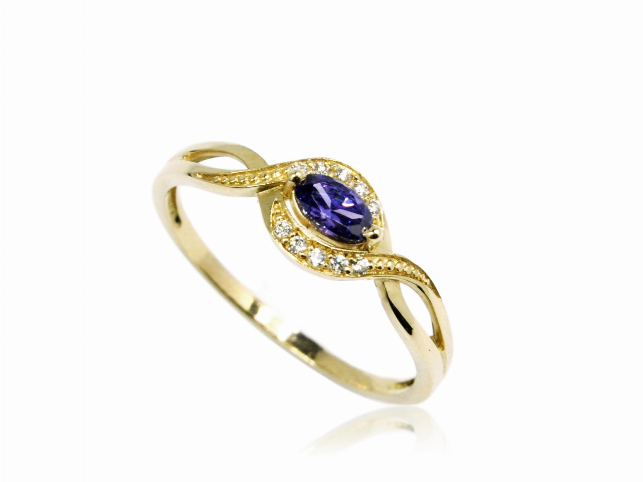 ZŁOTY PIERŚCIONEK CYRKONIE I AMETYST 585 P1879