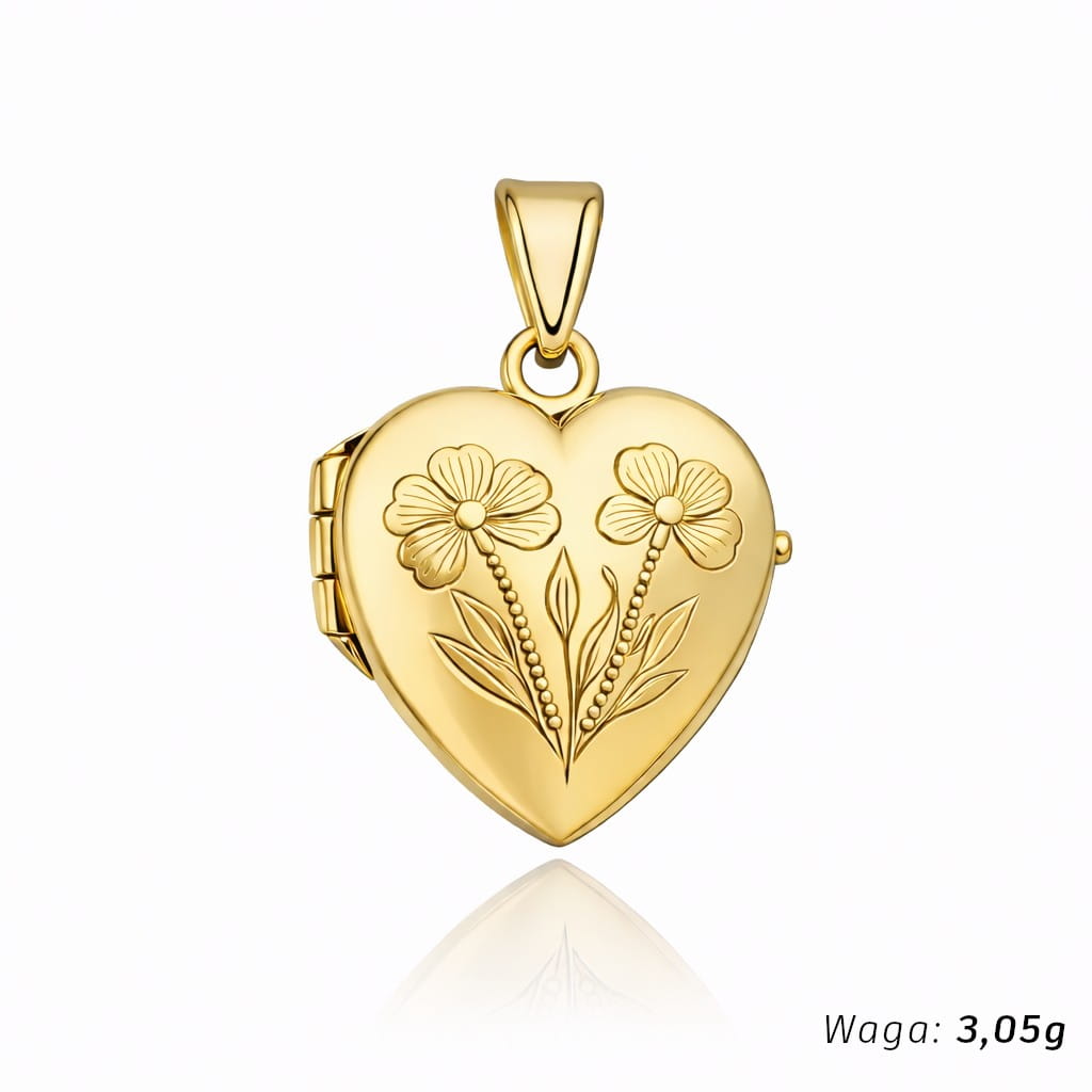Zawieszka puzderko serce grawerowany kwiatek - różne wzory
