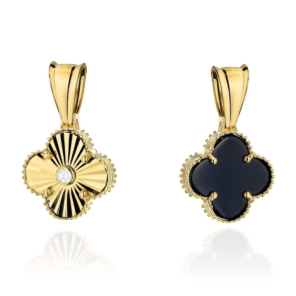 Zawieszka złota dwustronne koniczynki z czarnym kamieniem