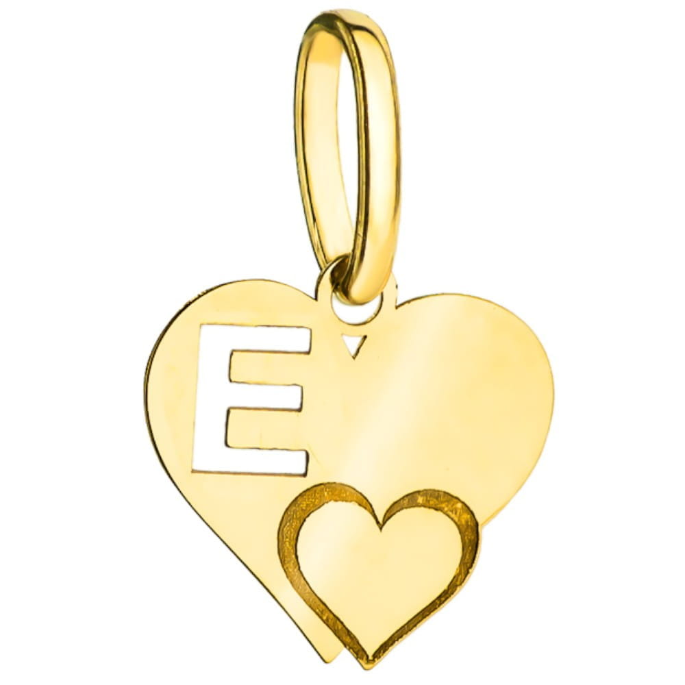 Zawieszka złota literka E z serduszkiem