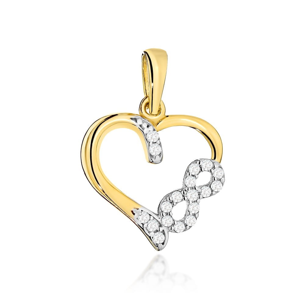 Zawieszka złota serce ze znakiem nieskończoności w dwóch kolorach złota