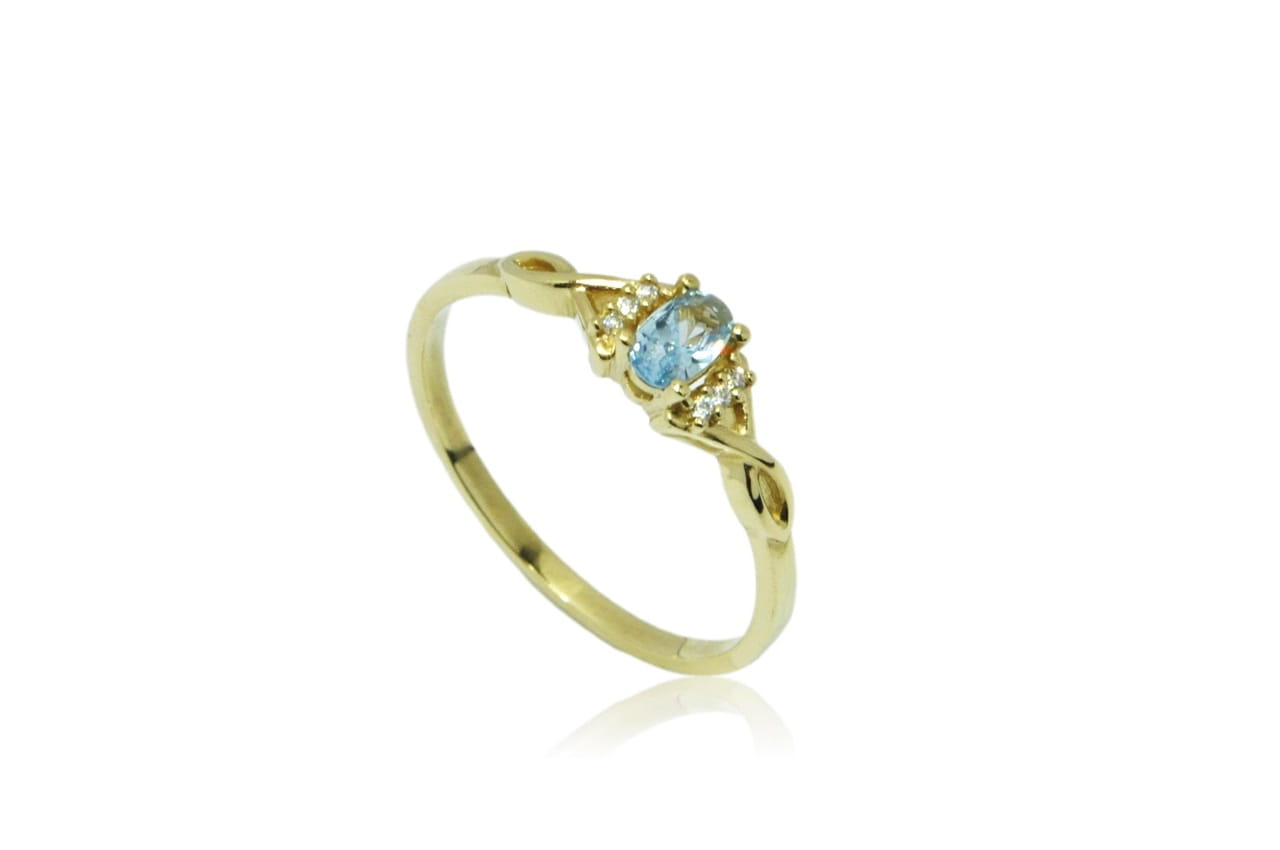 Złoty pierścionek 0,585 Akwamaryn i cyrkonie