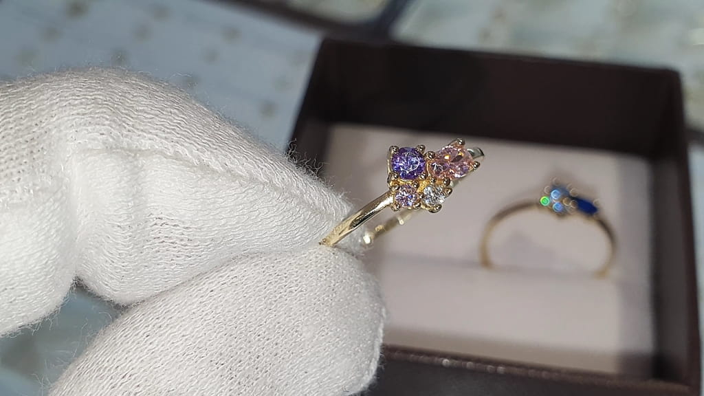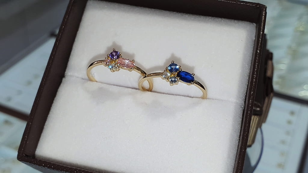 Złoty pierścionek 0,585 Cyrkonia, Szafir, Akwamaryn
