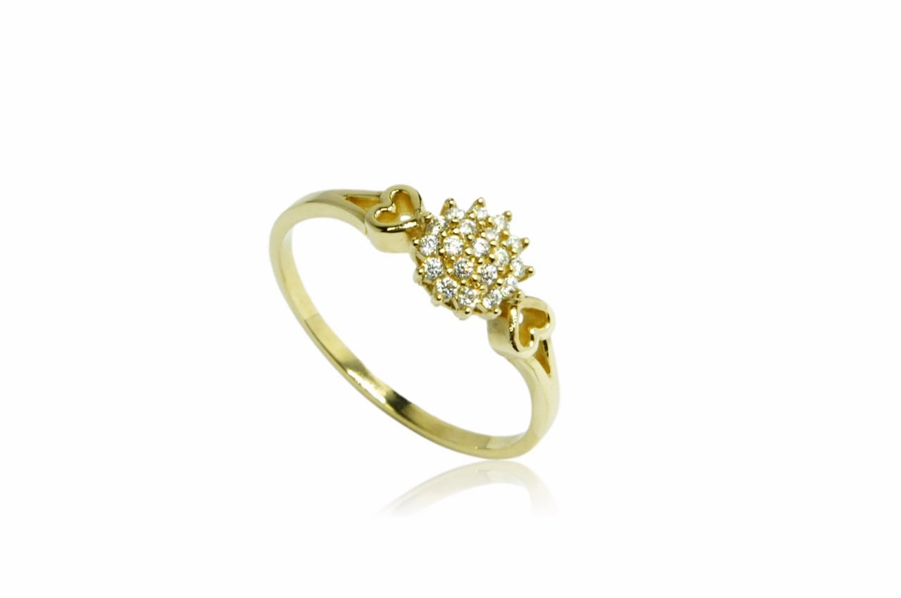 Złoty pierścionek 0,585 Cyrkonie i serduszka