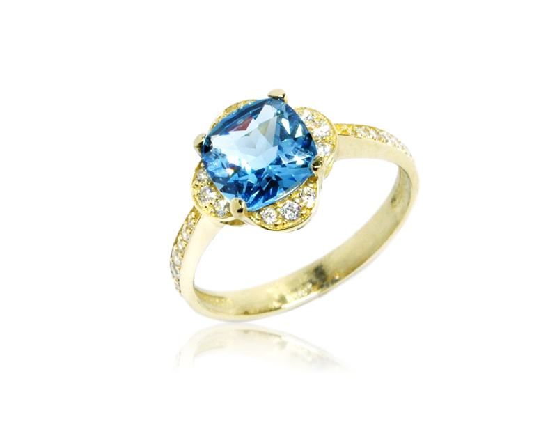 Złoty pierścionek P1752 Akwamaryn 585