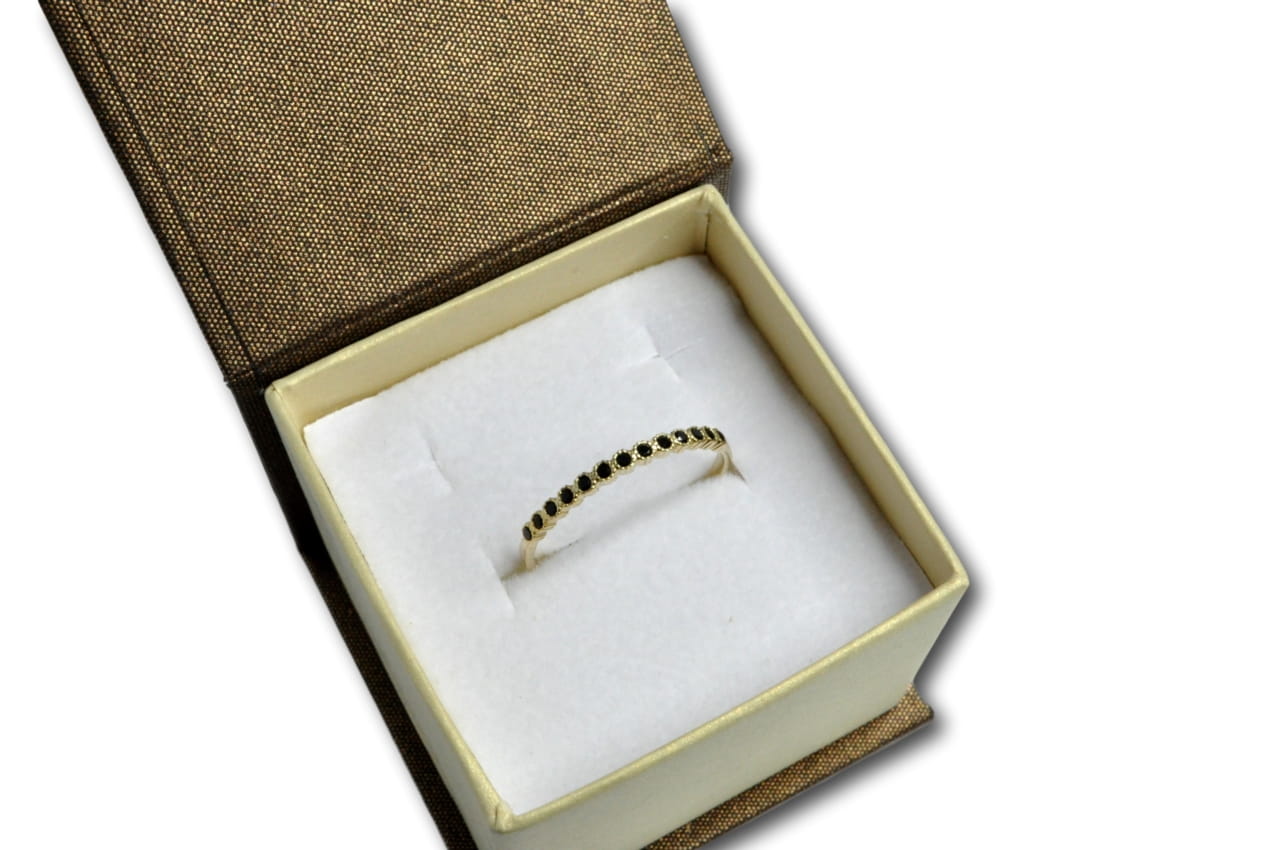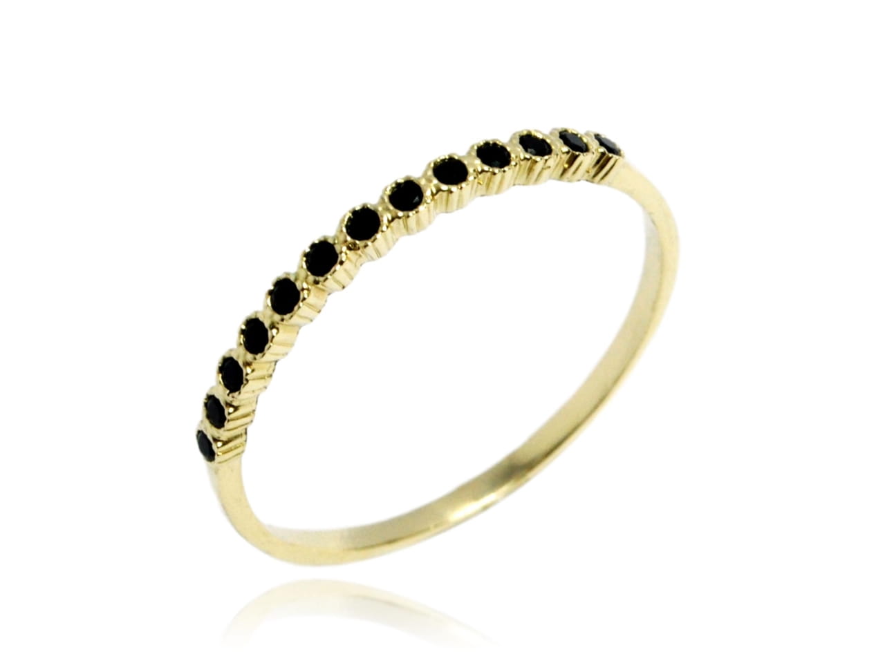 Złoty pierścionek P1803 Celebrytka czarne cyrkonie