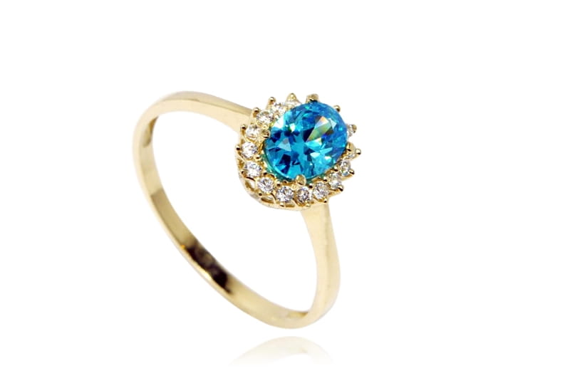 Złoty pierścionek P1959 Cyrkonie i Topaz
